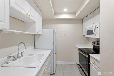 This centrally located condo with 2 beds/1 bath and fresh paint is minutes away from Microsoft, Bellevue & light rail station. Welcome to Bellevue Manor with modern living, updated flooring & unbeatable location. The building has a brand new roof and sidings, offering worry-free ownership. Space for possible home office. Enjoy the convenience of an assigned parking spot and plenty of guest parking, a roomy bedrooms with natural light, spacious closets and access to outdoor pool and cabana. No rental cap, ideal for investors or owner occupiers