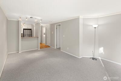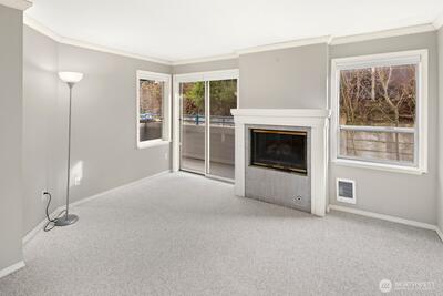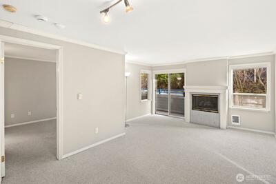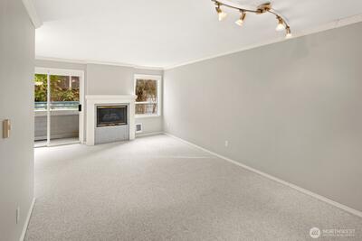With its comfortable & functional living spaces, this top-floor unit offers numerous conveniences to include gas fireplace, unit laundry room & private deck accessed via both the living room & bedroom. Cute kitchen is open to the living area with eat-in bar & granite counter tops. The large bedroom offers a walk-in closet with walk-thru vanity and private full bath. Enjoy elevator, lobby, common-area rec & exercise room plus an assigned unit parking space in the secure garage! Great Queen Anne location close to Whole Foods, the Interbay Golf Course & Myrtle Edwards Park with easy access to Downtown, Ballard, I-5 & Lake Union!