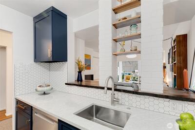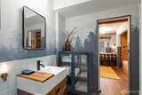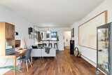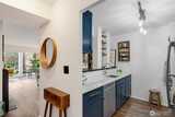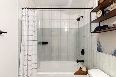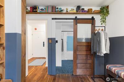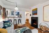 This completely bespoke co-op is a study in thoughtful reinvention—PNW cabin soul meeting sleek Scando detail. Walnut engineered hardwoods, custom shelving, and an electric fireplace with an iron mantle and surround create spaces that are equal parts cozy and architectural. The refreshed kitchen is smartly designed with abundant storage, quartz counters, ceramic tile backsplash, and updated appliances. A studs-out bath remodel delivers a true retreat with a soaking tub, penny tile floors, excellent storage, and a reclaimed sliding door into the bedroom. A light-filled atrium anchors the home, ideal for indoor plant lovers and perfectly suited for dining, creative work, or a serene home office. Melrose Co-op offers rare amenities including an indoor pool, gym, woodshop, parking with community EV chargers, and expansive west-facing views from the garden terrace and rooftop deck. With a new building envelope completed in 2012 (roof, windows, siding), the building is thoughtfully maintai