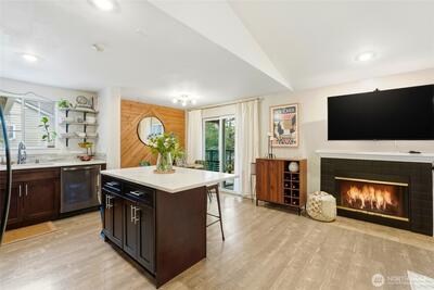 Welcome home! This adorably remodeled 3 Bed 1.75 Bath condo is the one you've been looking for! Light & bright open-floor-concept Great Room features vaulted ceilings, wood burning fireplace, and views of the Puget Sound and Olympic Mountains! Thoughtfully renovated Kitchen with quartz counters, stainless steel appliances, custom cabinetry, and an island perfect for entertaining guests. The cutest Dining Room for holiday parties and a spacious deck for your summer BBQ's! Gleaming vinyl plank flooring throughout. Primary Suite features walk-in closet and private 3/4 Bath. The Village at Redondo Clubhouse includes 2 outdoor pools, hot tubs, Fitness Center, and so much more! Covered parking, personal storage room off deck, and close proximity to Restaurants, shopping, and easy access to downtown Seattle freeways!