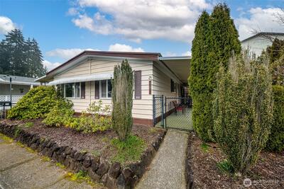 Well-maintained 2-bedroom, 1.75-bathroom manufactured home in a convenient 55+ park location close to shopping and restaurants. Enjoy year-round comfort with central A/C and a functional layout featuring a private primary suite with a walk-through vanity area, ample closets, and a separate shower/toilet space. Outside, you’ll find a covered two-car carport with alley access for easy off-street parking, plus a storage shed/workshop with workbench—perfect for hobbies and extra storage—along with a fenced area ideal for pets or outdoor enjoyment. Park rent includes water, sewer, and garbage. A great opportunity for low-maintenance living in a central location!