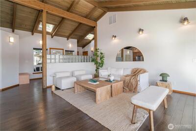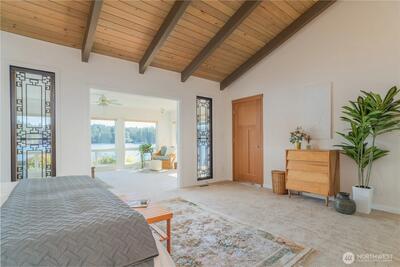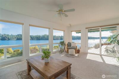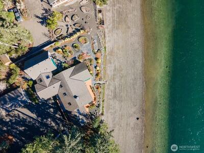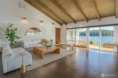 Experience extraordinary waterfront living on 120 ft of private saltwater shoreline, where oysters line the beach & orcas pass by. Set on 1.3 beautiful acres, this unique property offers privacy, flexibility, & a true connection to the PNW landscape. The single-level main home is 2,165 sf & features 2 primary beds plus a den, designed for comfortable everyday living with easy access to the outdoors. The heart of the home is the stunning main living space, where a dramatic floor-to-ceiling glass wall frames sweeping views of Pickering Passage. Vaulted ceilings create an airy, light-filled atmosphere, while ever-changing marine vistas become the backdrop to daily lifeāsunrises, passing boats, & wildlife all on display from the comfort of your own living room. A 1,221 sf guest house provides wonderful separation for visitors, multi-generational living, or creative use as a studio or office. Connecting the two homes is a remarkable natatorium (699 sf) designed for year-round enjoyment, f