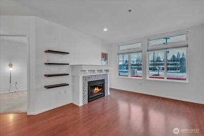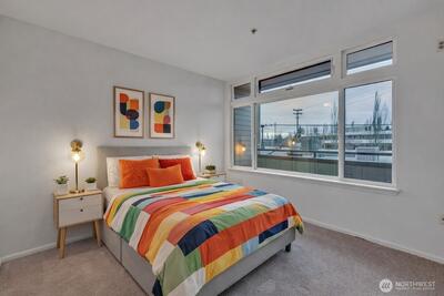 Welcome to The Ashbury, one of North Queen Anne’s most sought-after communities, where homes rarely become available. This is the first unit to hit the market since 2023—a true reflection of how much residents love living here. This like-new, north-facing corner unit offers modern urban style with exceptional comfort. Fresh interior paint and brand-new carpet create a move-in-ready feel, while tall ceilings enhance the spacious great-room ambiance. The open kitchen features bar seating and flows seamlessly into a dedicated dining area and inviting living room with a cozy electric fireplace, perfect for Seattle evenings. The primary bedroom includes an ensuite bath, complemented by a second bedroom (think 2nd bedroom, office space etc) and full guest bath. Additional highlights include in-unit laundry and a large, dedicated parking space and storage unit in the secure garage. The large community rooftop deck is perfect to enjoy the long summer days we have coming up! Ideally located