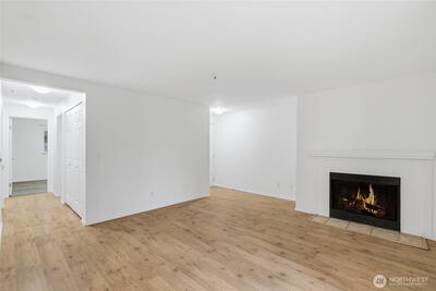Wonderful ground floor home at Balaton Condominiums in the heart of Lake Forest Park. Enjoy a central location just minutes from I-5, Lake Forest Park Town Center, parks, and Lake Washington. This beautifully updated home features durable hard surface flooring throughout and brand-new quartz countertops in both the kitchen and bathrooms. The bright, open living area offers a cozy fireplace and access to a private patio that backs onto peaceful community green space. Two generous bedrooms, including a primary suite with ensuite bath and walk-in closet. In-unit washer and dryer for added convenience. Enjoy fantastic amenities including pool, hot tub, sauna, gym, and clubhouse. Well-run HOA with no rental cap—great for owners or investors!