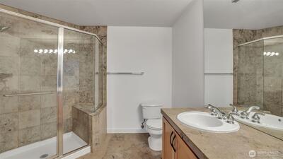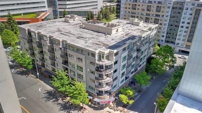 Experience urban luxury in this top-floor 2 bedroom + den penthouse condo in Downtown Bellevue. The primary suite features an ensuite bath and walk-in closet, while the spacious living is an open floorplan concept. Step onto the SW-facing balcony to enjoy stunning city views and abundant natural light. Brand new carpet and fresh interior paint! This home comes with two parking spots in secured garage, a storage unit, and no rental cap. Located just steps from top schools, coffee shops, dining, groceries, and premier shopping at Bellevue Square, The Bravern, and the Link Light Rail, it offers the best of convenience and sophistication. Well managed HOA and strong reserves.