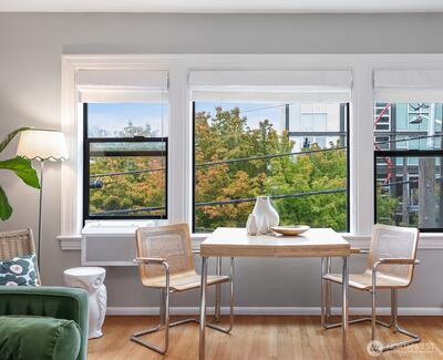 Compelling new price! Affordable option to live in a central city location, in a building that fosters community in the vibrant neighborhood of Capitol Hill. Walk score of 98-just minutes to light rail, Pike Pine corridor, downtown, Seattle U, streetcar & the G line bus. This top floor unit in charming Union Terrace provides a quiet retreat with 1924 character. Updated full sized eat-in kitchen features ss appliances, dishwasher, full-sized refrigerator and eco-friendly Marmoleum flooring. Large living room with gleaming hardwoods, filled with natural light from huge windows looking out onto the treetops. Remodeled modern bathroom with heated floors & a generous walk-in closet. Well managed building. Enjoy a secure entrance, community laundry room, bike storage-electric bike storage coming soon. Low HOA dues include property taxes, water, sewer, garbage, h/w, common area maintenance and wifi soon. Don’t miss this opportunity!