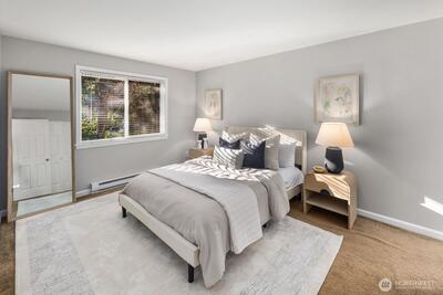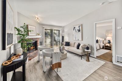 Location, convenience, & style come together in this must-see 2-bedroom, 1.75-bath condo. The refreshed interior features new paint & an open, functional layout that lives comfortably & efficiently. The kitchen offers generous counter space & ample storage, ideal for everyday living & entertaining. The spacious primary bedroom includes great closet space & its own private ¾ bathroom. Enjoy the added bonus of a private patio with extra storage, perfect for outdoor relaxation & convenience. This home offers exceptional flexibility with no rental cap, making it a great option for both owner-occupants & investors. Additional highlights include designated covered parking & low HOA dues that cover water, sewer, & garbage. The community features outstanding amenities, including a clubhouse, pool, hot tub, sauna, exercise room, & game room. Ideally located close to schools, shopping, restaurants, parks, & bus lines, with easy access to Juanita Beach, Juanita Village, Totem Lake, & I-405. All
