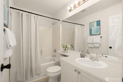 Welcome to this immaculate and updated quality-built home in the desirable Enclave community. You'll love the open layout with high ceilings and abundant natural light! The main level features a huge living room with gas fireplace, dining space, smaller family room off the kitchen and an updated kitchen w/eating area and slider to a private backyard. Upstairs offers three spacious bedrooms, including an oversized primary suite with 5 piece bath and walk-in closet. The lower level has substantial space for a rec room, 4th bedroom or office w/laundry and half bath. One of the few homes with a generous driveway. Close to Totem Lake, Juanita Beach, and downtown Kirkland plus quick I-405 access. Top-rated LW schools.