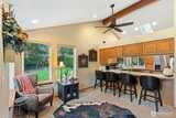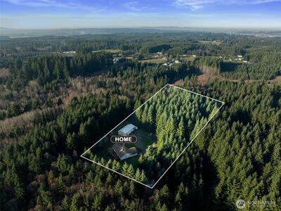 Private country living on 5 beautiful acres with a 2186 sq ft 3-bedroom 2 bath home offering space, comfort, and versatility. The primary suite features a walk-in closet and attached bath with a jetted spa tub. Vaulted ceilings and skylights provide abundant natural light. Home is equipped with central vacuum, two hot water heaters, and a heat pump with A/C. Laundry room featuring folding table and ironing board. Cozy living area showcases a newer propane fireplace insert with a brick surround. Home has 456 sq ft attached garage. Also a 60' x 30' detached shop with 14 ft doors, gas heater, large loft, and shower, toilet, and sink- ideal for hobbies, storage, or workspace. Outdoor features include a 75' x 25' deck reinforced for hot tub, sprinkler-irrigated lawn, apple trees, and established vegetable gardens with blueberry and raspberry bushes, all set with a beautifully landscaped ground. Wooded acreage offers trails and privacy. Has marketable timber. Assumable VA loan with 2.25% int