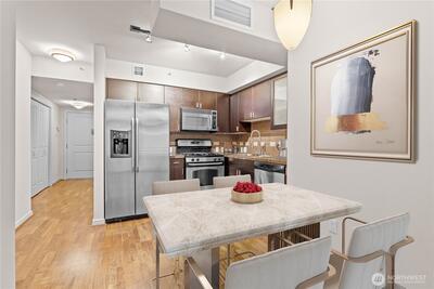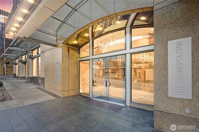 Urban studio living at its best in The Cosmopolitan, Seattle's luxury condo living building. This efficiently designed studio is filled with natural light, one wall being almost entirely windows and glass door, and offers a smart, open layout ideal for city living or investment ownership. No rental cap provides rare flexibility for long-term investors. Enjoy resort-style amenities including a 24-hour concierge, secure entry, fully equipped gym, spa and sauna, and a stunning rooftop deck with panoramic city views—perfect for entertaining or unwinding above it all. No need to worry about the size--the Cosmopolitan offers an Owners' Lounge for group gatherings, a workspace with individual work stations, and a conference room for all your group and work needs. Unbeatable walkability to dining, shopping, entertainment, transit, and major employment hubs near Lake Union makes this an ideal home base for full-time residents, part-time city dwellers, or out-of-area buyers seeking a lock-and-