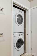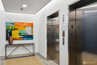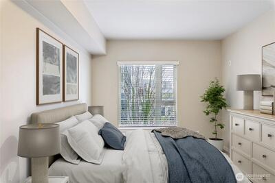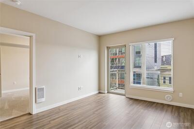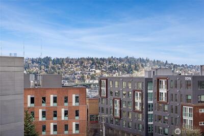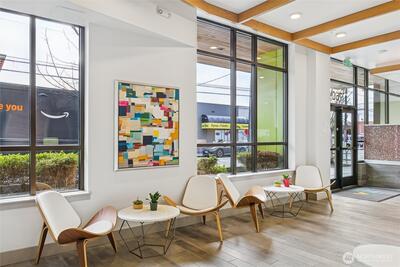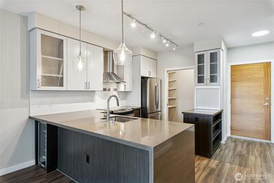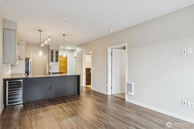 Move-in ready, sun-soaked, and effortlessly inviting, this spacious third-floor condo at The Vik captures the best of Ballard living. Thoughtfully designed across 754 sq ft, this 1 bed + den (ideal WFH or flexible living space) features fresh paint, new carpet, and an open, airy layout bathed in natural light. The heart of the home is a sleek chef’s kitchen w/ quartz counters, stainless steel appliances, two-tone cabinetry, wine fridge, appliance garage, and an eat-in counter that’s perfect for entertaining or slow, cozy mornings. The living space flows seamlessly to a private south-facing balcony, your front-row seat to sunshine and city energy. A generous bedroom that can accommodates a king-size bed and offers a walk-in closet, while the modern full bath and in-unit laundry add everyday ease. Enjoy secure garage parking, concierge services, fitness center, bike storage, dog wash, and a stunning rooftop deck complete w/ outdoor kitchen, dog run, and multiple spaces to gather, rel