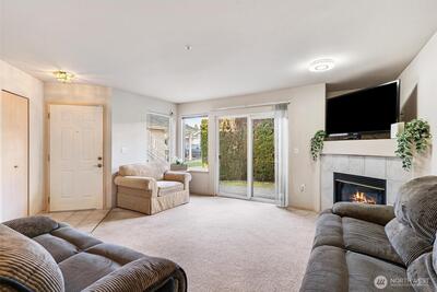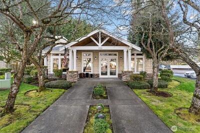 Perfectly accessible ground-floor end-unit condo in the gated Windsong Arbor community—no stairs! This 3-bedroom, 2-bath home features an open-concept living, dining, and kitchen layout with a breakfast bar, ideal for comfortable everyday living. The kitchen offers abundant cabinetry and counter space. The spacious primary suite includes a generous vanity and ample counter space. The first bedroom features French doors and works beautifully as a den or home office. The laundry area accommodates full-size appliances. Community amenities include a clubhouse, Gym, Basketball/Sports Court and pet park. Enjoy a walkable location near shopping and dining along Benson Road, with quick north/south freeway access via 212th.