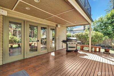 Welcome Home to desirable Heather Highlands. Quality upgrades throughout! Gourmet Kitchen features updated appliances including double-ovens, slab-granite countertops w/breakfast bar, eating nook, double walk-in-pantries & tons of counter/cabinet space! Open concept kitchen & family-room w/fireplace & deck access. Spacious Dining/Living rooms w/gas fireplace, bring special ambiance to meals & treasured conversations. Oversized windows flush natural light throughout. 4 Bedrooms. Den/Office on main had closet & could be added for Rambler style living! Oversized Primary bedroom features 5-piece (granite) bath-ensemble w/luxurious jetted tub, skylight, walk-in-closet & gas-fireplace for cozy winter nights. French doors invite you onto the deck overlooking a garden oasis & offers peace & quiet to listen to nature, bird-watch or simply enjoy a morning beverage. Hardwood floors in entry, updated hardware on 6-panel wood doors, wood-wrapped windows, updated lighting & designer paint throughout