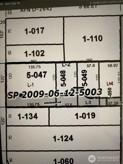 Attention investors & builders for 1, 2, or all 3 lots tucked off street down 20’ wide access easement to southern side of lots. This is the most westerly single lot offering close proximity to I-5, Tacoma Mall, schools, & just a few blocks to the beautiful Wapato Park with trails. Sewer, water, & power available through utility easement for you to build a new home. The Building permits have expired for 4 bedrooom, 2.5 bath two story home with 2 car garage & 3,000 square feet. Plans that were approved are available for your resubmission.The southern 20’ of this lot are driveway easement. For a larger footprint or yard, you may buy two or three lots to customize your site plan as you wish & submit to the city. Front of homes face south
