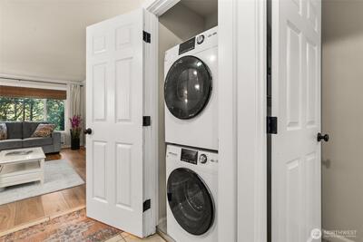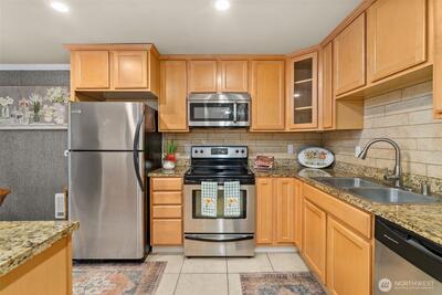 Experience the perfect blend of vibrant downtown energy and peaceful community living at 4605 56th St NW #1B. Situated in the heart of Gig Harbor, this stunning residence is tucked away in the serene Harbor Woods community, offering a rare wooded atmosphere just steps from the harbor’s best amenities. The interior features a versatile layout designed for modern flexibility, including a brand-new 8x10 bonus room—perfect for a home office or hobby space. The bright living room flows into a spacious dining area, positioned next to large sliding glass doors. These doors are newly outfitted with custom linen vertical blinds, leading to a recently installed deck ideal for outdoor lounging. The chef-inspired kitchen boasts gorgeous granite countertops and a full suite of stainless steel appliances. Significant functional upgrades provide total peace of mind, including a brand-new water heater, a new washer and dryer, and new vertical blinds. Living here means everything is within reach