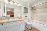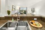 Stunning Elliot Bay and Olympic Mountain views from this bright Selano condo at the nexus of Lower Queen Anne, Belltown, and South Lake Union. Wind down watching ferries glide past Olympic Mountain sunsets from your living area and private deck, then wake up to Elliott Bay views and the iconic PI Globe from your primary bedroom. This condo is refreshingly quiet. Freshly painted with brand-new carpet and sleek engineered hardwoods, this home blends clean design with everyday comfort. The versatile second bedroom is ideal for a home office or guest space, with its own 2nd deck. In-unit washer/dryer, secured garage parking, and private storage add convenience. Pet-friendly, no rental cap, and LOW HOA DUES for the area — this is city living, streamlined.