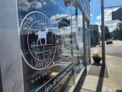 Prime Tenino Commercial location! High visibility on one of the business corners in the downtown, weekend activity thru downtown brings lots of business to the Tenino area. Stone building has over 3500 square feet and is currently configured into 3 separate units – can all be one again. High 15’ ceilings and hardwood floors. Plenty of windows on 2 sides - lots of light for retail, Commercial kitchen on left side, for café options. New HVAC on the right side ($23k value). New HVAC on the left unit by closing. Designated parking spaces plus plenty of street and public parking options. Walking distance to Tenino park and quarry pool. Subject to existing leases.