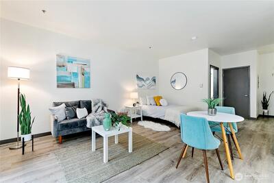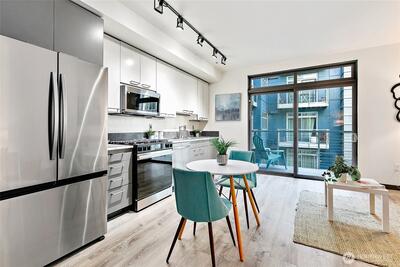 Tucked above the energy of Capitol Hill, this south-facing built green studio at Trace North offers a calm, light-filled retreat in the heart of it all. Recently refreshed with new floors, fresh paint, and new appliances (including new en suite washer and dryer) the space feels modern, warm, and effortlessly livable. Sunlight pours in throughout the day, highlighting a flexible layout that adapts easily to city living—whether as a full-time home or the perfect pied-à -terre. Step outside to endless dining, shopping, groceries, parks and nightlife just moments away, or hop on nearby light rail for easy access across Seattle and the Eastside. Walk score 100, Bike score 90/100, Transit score 82/100. Live everything Seattle on foot, but in case you need a car, this unit comes with secured underground parking. Also includes onsite private storage unit for excess items. Welcoming modern lobby and an expansive rooftop deck ideal for entertaining. Pet-friendly building with rentals allowed