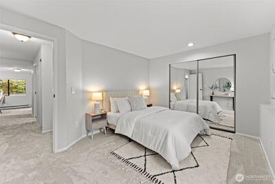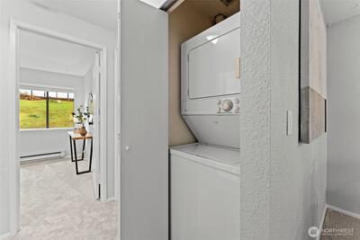 Located in a quiet, boutique-style community, this inviting ground-floor 2 bed/1 bath condo offers a perfect blend of comfort and thoughtful updates, including new carpet and fresh interior paint. The well-designed kitchen features generous counter space and cabinetry, stainless steel appliances, pullout shelving, and a large pantry closet for exceptional storage. The spa-inspired bathroom showcases a dual vanity and luxurious heated tile floors. Enjoy a private, fenced patio with additional storage, plus the convenience of in-unit washer and dryer and smart wiring throughout. Ideally situated near shopping, restaurants, Totem Lake Village, Evergreen Hospital, and just minutes to Woodinville Wine Country. HOA dues include water, sewer, garbage, and common area maintenance. An excellent opportunity to enjoy easy, low-maintenance living in the sought-after Kingsgate Terrace community.