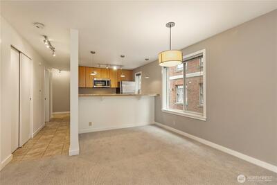 Spacious Capitol Hill, rarely available 2 bedroom! Open kitchen with breakfast bar, updated stainless steel appliances looks out to spacious living room with room for full dining set. The spacious and covered deck provides a wonderful extension of the living space for relaxing outdoors. Located at the edge of Capitol Hill's popular Pike/Pine neighborhood with all the shops, restaurants, night life, coffee houses and grocery stores. Just blocks to light rail station, easy access to downtown, South Lake Union and a convenient commute to the Eastside. Storage unit conveniently located outside unit and includes one reserved garage parking space.
