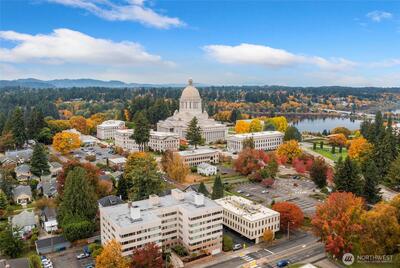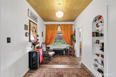 Nicely updated with charming vintage style, this home is ideally located close to everything Olympia has to offer. A large picture window fills the living space with abundant natural light. Two bedrooms are located on the main level, with a private primary bedroom upstairs. Outside, enjoy a spacious yard and a detached garage, plus the added bonus of fresh exterior paint.