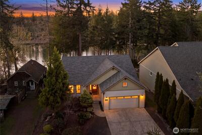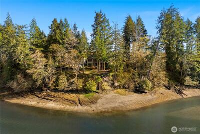 Rare opportunity to own a piece of the Sound. This one-owner, custom daylight basement rambler sits on .73 acres with 71’ of medium-bank waterfront on Little Skookum Inlet. Unlike many coastal homes, this property includes deeded beach and tideland rights, offering you a private gateway to Washington’s pristine marine life. The main level defines open-concept living, flooded with natural light from vaulted ceilings and skylights. Bamboo hardwoods lead you through the airy Great Room w/ Gas Fireplace, to a chef-inspired kitchen featuring granite tile, stainless appliances. Wake up to shimmering water views in the primary suite, complete with a 5-piece bath, tiled shower, and walk-in closet. Step out onto the wrap-around Trex deck, the ultimate front-row seat for sunrises over the inlet. The lower level offers incredible flexibility with a second massive living area, wet bar, two additional bedrooms, and a full bath. With its own access to a large cement patio and serene, matur