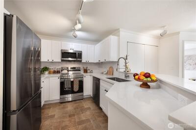 Beautifully refreshed 2-bedroom, 2-bathroom condo in the heart of Bellevue! This bright and inviting home showcases fresh updates throughout, including a brand-new kitchen and newly installed bathroom vanities. Durable hard-surface flooring ensures easy maintenance, while sleek stainless steel appliances and the convenience of an in-unit washer and dryer enhance everyday living. A private patio provides peaceful views, and the building offers elevator access and a well-equipped gym for added comfort. Nestled in a quiet, friendly neighborhood setting, yet just moments from everything Downtown Bellevue has to offer, this move-in-ready condo is the perfect combination of style, convenience, and low-maintenance living. NO Rental Cap