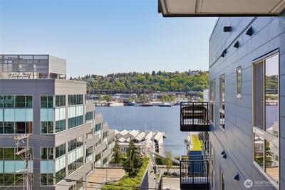 Tastefully remodeled and spacious 1-bedroom unit located on the 5th floor, welcome to the Nautica Condominiums! Open layout design with a wall of windows and a private deck with water views of SLU that spans nearly the full length of the home. Kitchen features a commercial grade convection gas stove, S/S appliances, and a mixture of white quartz and granite countertops. Solid cherry wood cabinets throughout, recessed lighting, and gas fireplace. Other features include in-unit washer and dryer, new hot water tank and carpets, and fresh paint. Full exterior building renovation completed in 2022. Minutes to the Space Needle, Climate Pledge Arena, and Downtown. Well funded & run HOA, pet friendly. Minutes to Mercer St, I-5 access with ample transit options. Call this one home!