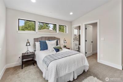 Exceptional new construction in Kirkland's coveted East of Market neighborhood. This thoughtfully designed 3,278 sqft home, blends luxury and comfort with an open floor plan, engineered hardwoods, hardwood stairs with metal railings and a cozy gas fireplace. The gourmet kitchen shines with soft close shaker cabinets, undercabinet and accent lighting. Spa like baths feature heated tile floors and matte black fixtures. Energy efficient systems and designer finishes throughout. A rare opportunity near top-rated schools and vibrant downtown.