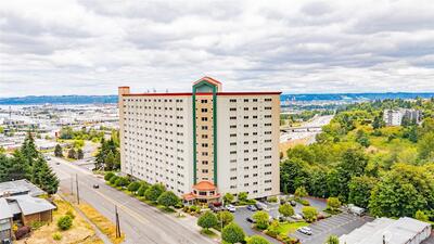 Welcome to urban living at its finest! Located on the 4th floor, this 1 bed, 1 bath condo in Pacific Tower offers a breathtaking view of Mount Rainier and the Puget Sound from the comfort of your own home. Enjoy an open layout with large windows that flood the space with natural light. The building features secure entry, elevator access, a fitness center, a community center, and well-maintained common areas. Just minutes from I-5, public transit, downtown Tacoma, and shopping & dining, this condo is ideal for commuters or anyone looking to enjoy the best of city living.