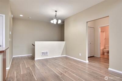 Enjoy easy, low-maintenance living in this charming 2-bedroom, 2-bath DuPont townhome, centrally located! Step inside to find a bright, open-concept layout with vaulted ceilings and a welcoming wide stairway leading to the upper-level living space. Beautiful vinyl plank flooring flows throughout—no carpet anywhere! Relax by the cozy electric fireplace or gather in the spacious living area that’s ideal for entertaining. The kitchen comes fully equipped with all appliances included, plus a convenient stackable washer and dryer. Both bathrooms are full-sized, offering comfort and functionality. You’ll love the attached 1-car garage with an additional parking space behind it. Exterior maintenance and landscaping are handled by the HOA, so you can spend more time enjoying life and less time on upkeep. Take advantage of nearby parks, playgrounds, and scenic trails, or stroll to downtown for your morning coffee. With year-round community activities and a friendly neighborhood vibe, thi