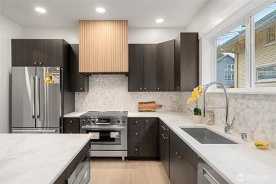 Reimagined modern living in the heart of Capitol Hill. New systems, mini splits, and off-street parking. Complete studs out remodel - everything new and high end. This 5-bedroom + office spans 2,700+ sq ft across three flexible levels—perfect for multi-gen living, working from home, and hosting the holidays in style. The light-filled main level features a custom fireplace, open dining, and a designer kitchen with an ample-sized island and walk-in pantry. Luxe primary suite includes a walk-in closet and a spa-like bath. Upper level adds 3 more bedrooms, while the lower level offers a large bedroom, full bath, office/den, and private entry. Walk to Madison Valley eats, parks, and everything Seattle.