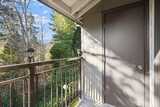 Perched as a top-floor end unit with no stairs, this light-filled condo backs to a serene greenbelt, offering exceptional privacy and a peaceful setting. A slate entry leads into the spacious living room, where a cozy wood-burning fireplace creates a warm, inviting focal point. Large windows flood the home with natural light, enhanced by fresh interior paint and updated light fixtures throughout. Step outside to your private balcony—perfect for morning coffee or unwinding at the end of the day. The kitchen features stainless steel appliances and luxury vinyl plank flooring, blending style and durability. The beautifully renovated bathroom boasts an alabaster quartz countertop, custom cabinetry, and thoughtfully chosen accent paint. Both bedrooms are generously sized with walk-in closets. All appliances are included for true move-in readiness. Enjoy two covered parking spaces (41 & 42). HOA dues include water, sewer, and garbage. Community amenities offer a garden, athletic cour