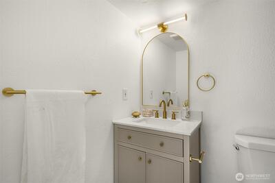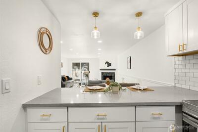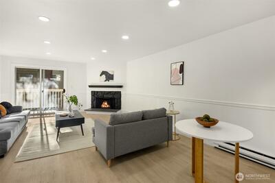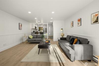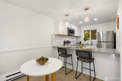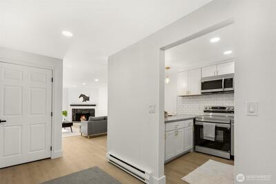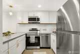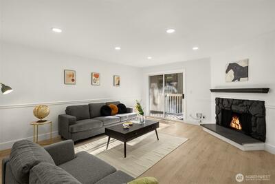 Tucked away in a quiet, beautifully maintained community, this spacious 2-bedroom, 2-bath condo is a true retreat. Thoughtfully and meticulously remodeled, the home features stunning new tile work, designer vanities, and elegant stone finishes—every detail carefully chosen to create a warm, refined atmosphere. The brand-new kitchen offers sleek stainless-steel appliances, granite-style counters, a welcoming bar area, and soft accent lighting, perfect for relaxed mornings or easy entertaining. New luxury flooring, modern paint tones, and bright, inviting lighting enhance the sense of comfort throughout. Enjoy the ease of elevator access and the peace of mind that comes with a well-run, attentive, and upkept HOA. Located just a short walk from the Microsoft campus and moments from Overlake, golf, transit, and major routes. No rental cap, no special assessments, EV-charging capability, separate storage, and friendly neighbors complete this hidden gem.