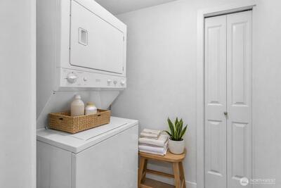 Live your best life in this stylish one bedroom residence with a smart open layout, cozy fireplace, huge windows, and your own private balcony. Fresh paint, newer carpet, cozy fireplace & in-unit washer/dryer. The sleek kitchen shines with granite countertops and newer stainless appliances. Walk-in closet, & extra storage. Everything you need, nothing you don't. You'll love the resort-style perks: concierge, gym, sauna, hot tub, BBQs, and a chill clubhouse for hanging with friends. Pet-friendly and no rental cap (min 90-day lease) = total flexibility. Just steps to top-rated coffee, bars, eats, shops, the Sunday Farmers Market, Golden Gardens, and all the Ballard essentials. Secure garage parking included. Welcome home!