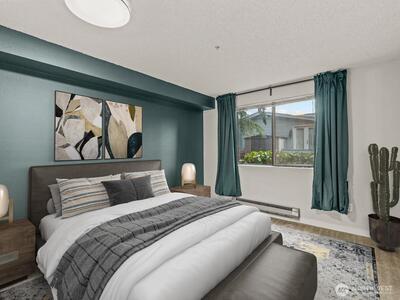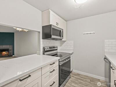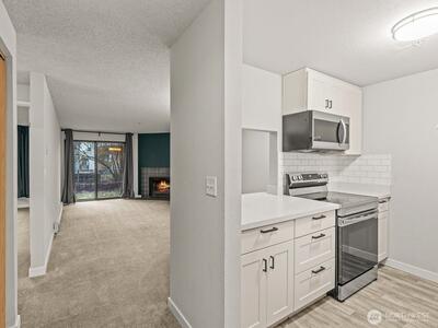 Nice 1bd 1 bath condo in the quiet gated Bye the Green Community with low HOA monthly dues! Recently renovated kitchen and bathroom. The unit feature large bedroom, full bath, laundry room, cozy wood fireplace, sliding glass door to the patio with attached storage. Close proximity to Kent station, public transportation. Pool, sauna, hot tub, club house and fenced dog park. NO RENTAL CAP makes this a wonderful investment.