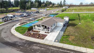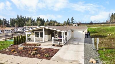 Crystal Mountain MHC — a new highly anticipated 55+ land lease community! Pass through the prestigious gated entry and discover this Eagle resale with a spacious, functional layout that is no longer available in the community. This sought-after floor plan features an office with French doors and bookshelves, dining space, and attached garage. Relax on the large covered front porch and enjoy LVP flooring throughout the main living areas. Stay comfortable year-round with a new electric furnace and heat pump with A/C. Washer and dryer included. The kitchen features a quartz island, stainless steel appliances, a gas range, walk-in corner pantry, white cabinetry, and striking tile backsplash. The impressive primary en-suite offers dual sinks, abundant storage, tile walk-in shower with dual shower heads, and walk-in closet. Exceptional corner lot next to pickleball courts. Fully fenced, landscaped yard with a 13x13 covered patio, 10x10 shed, and raised garden beds. Enjoy community amenitie