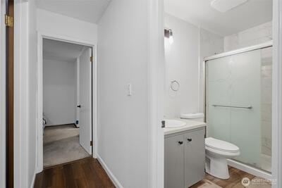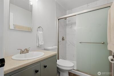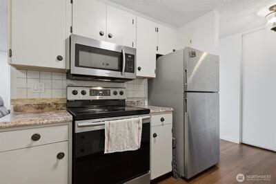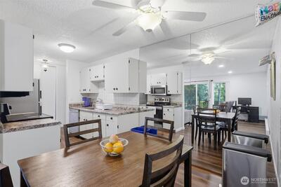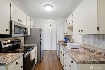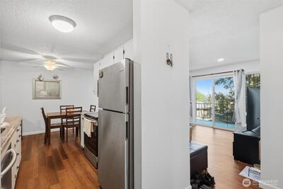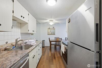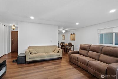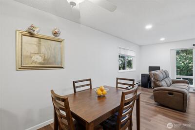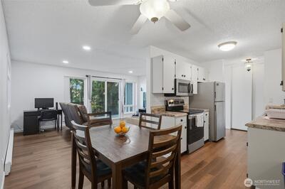 Tastefully updated top-floor 2-bedroom, 2-bath condo featuring a modern kitchen, laminate wood flooring, and newer windows. Enjoy year-round, picturesque views from the covered deck—plus a bonus 12' x 7' storage area. Perfect for first-time homebuyers or investors, this home comes with generous seller incentives: Seller Prepaid HOA dues for 12 months and $5,000 toward closing costs. Includes two assigned parking spaces, with public transit nearby for an easy commute. Conveniently located just minutes from the airport, downtown Seattle, shopping, beaches, and parks—a great opportunity to start homeownership or add a strong rental option to your portfolio.