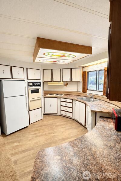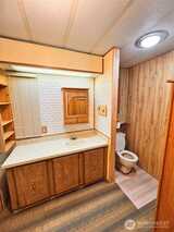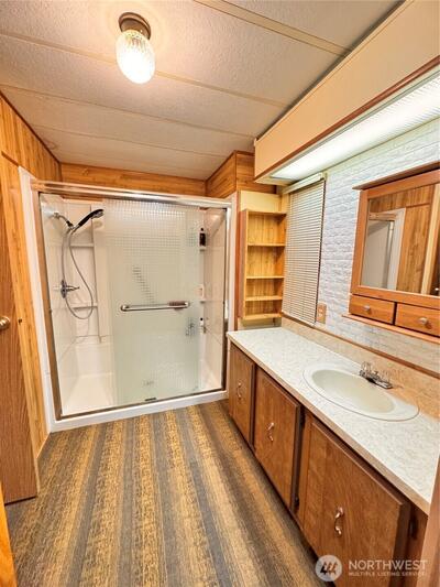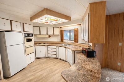 Welcome to this bright and airy manufactured home located in a desirable 55+ community just around the corner from scenic Panther Lake and its nearby dog park. Set on a beautifully landscaped lot, the garden is a true retreat featuring flowering crab apples, three varieties of maple, lilac, dogwood, and a striking blue spruce, all complemented by a tranquil water feature. Inside, the home offers comfortable, open living with abundant natural light. The spacious primary suite includes an oversized, wheelchair-accessible shower designed to accommodate a full-size wheelchair. Major systems are in excellent condition, with both the heat pump and furnace under 10 years old. Residents enjoy resort-style amenities including a swimming pool, sauna, spa, fitness and recreation classes, and convenient RV parking. This is relaxed, low-maintenance living with nature, comfort, and community right outside your door