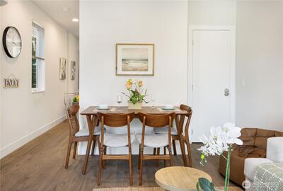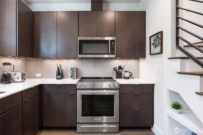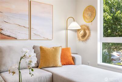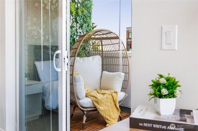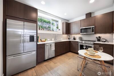Experience the pinnacle of urban luxury with this meticulously crafted corner-unit townhome in the heart of Seattle’s vibrant Eastlake neighborhood. Designed by award-winning Caron Architects and expertly executed by the renowned Murray Franklyn, this home is a masterpiece of top-tier craftsmanship and thoughtful design. The main level features an expansive, light-filled living area, dining space, and a contemporary kitchen, while the second level offers two generous-sized bedrooms and a stylish full bath. The upper level is dedicated to a luxurious primary suite complete with a private, expansive balcony. Your personal city sanctuary continues on the private rooftop terrace, where you can entertain guests while taking in sweeping views of Lake Union and the Seattle city skyline, or unwind in your very own private sauna hut. A true commuter's heaven, this property is just a quick stroll from major employer office buildings and offers easy access to I-5, all while being steps away fro