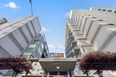 Soaring above the city on the south-facing 10th floor, this sub-penthouse delivers a refined urban lifestyle framed by floor-to-ceiling windows and uninterrupted views of Mt. Rainier, the Sound, passing ferries, and dramatic sunsets. The open living, dining, and kitchen layout is designed to keep the panorama in full view, while the private balcony becomes your personal vantage point for the city lights after dark.High-end details enhance every corner of the home: Tilt-and-Turn windows and doors, solid hardwood floors, 10-foot ceilings, a contemporary kitchen, and a sleek, fully tiled modern bathroom. The artfully designed bi-level lobby with onsite concierge leads to an impressive collection of amenities, including a community room, fitness center, business lounge, patio, and guest suite.Set just steps from Olympic Sculpture Park, the revitalized waterfront, vibrant restaurants, and Pike Place Market, this residence places the very best of Seattle living right outside your door. No Re