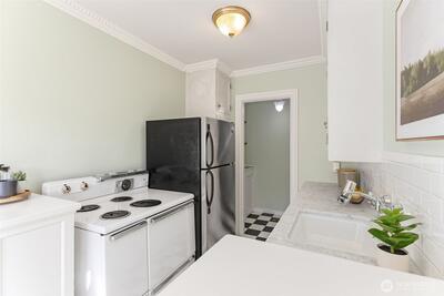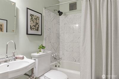 Perfect Pied-e-terre! Olympus Manor is a 1920’s Queen Anne classic. One floor from the lobby with easy access outside (few stairs), this cute studio is spacious and in a great location down a small hallway from the rest of the building. Light and bright with west facing windows. Coved ceilings highlight the period details throughout; Mahogany doors and trim, original hardwoods, charming crown molding and pretty finishes.. Formal entry gives nice separation and the wide living space allows multipurpose arrangement. Great storage with a huge walk-in closet and additional storage in the basement. Wonderful kitchen has dining space with windows, marble counters, cool vintage range, display glass cabinets and a walk-in pantry. Close to Seattle’s iconic landmarks, entertainment and sports, parks and recreation. HOA dues include all the extras; heat, maintenance, insurance and property tax. Laundry room in basement. Some pets allowed, rentals by exception, and a great well organized group