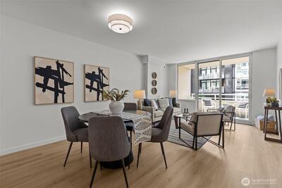 Experience elevated city living in this newly refreshed 1-bedroom, 1-bath home at Seattle Heights, perfectly positioned in the heart of Belltown. Boasting $60K in recent updates and luxury amenities, this residence offers a wide, open-concept layout with in-unit washer/dryer, central A/C, and a generous dual-access balcony ideal for indoor-outdoor living. Recent upgrades include new cabinetry, quartz counters, durable LVP flooring, stainless steel appliances, fresh interior paint, and modern doors—truly move-in ready. Seattle Heights delivers resort-style living with a 24-hour concierge, fitness center, pool, hot tub, sauna, business center, party room, assigned storage, and two stunning view terraces. Secure garage parking includes an EV charger and bike rack. Pet-friendly with no rental cap, making this an exceptional primary home or investment opportunity. With an unbeatable Walk Score of 97, you’re just moments from Pike Place Market, the waterfront, Olympic Sculpture Park, Cli