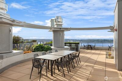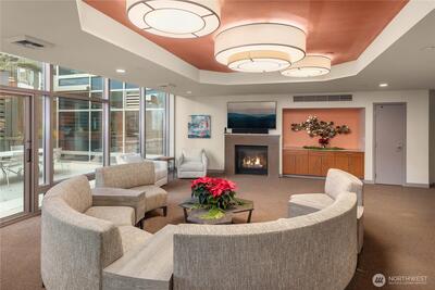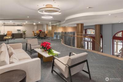 Sitting high above the city, enjoy snowcapped Olympic Mountains with Puget Sound as a foreground with ferries skimming across the water, cruise ships in port, and the brilliant Seattle Great Wheel. This Vibrant NW corner will delight with floor to ceiling windows to allow the sun to shine in. Large view deck off the living area to enjoy the fresh breeze. Custom Den area blends in perfectly in the living area. Stunning master bedroom with soaking tub will not disappoint. Second bedroom with sweeping views as well. Two parking spaces - EV ready, with a storage unit conveniently next to them. Cristalla amenities: rooftop deck w/BBQ, private seating areas, dog area, full gym, hot tub, sauna, steam room, lounges, business center, & 24/7 concierge service. All this above the city with a full range of lifestyle with the waterfront, Pike Place Market, the Amazon Spheres, shops, and world class restaurants to enjoy.