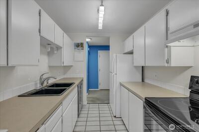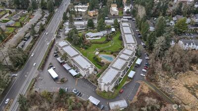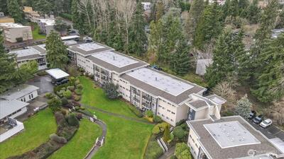 Enjoy the convenience of living in a complex that is conveniently located, surrounded by mature landscape in the heart of Bellevue!. Beautifully landscaped grounds complete with walkways, swimming pool and hot tub with plenty of lounging area, Cabana with exercise room, game room and kitchen as each building in the complex overlooks this tranquil centerpiece. Cozy Top floor one bedroom unit features a remodeled bathroom, newer appliances, new hot water tank, new washer & dryer. Secured Building. Many updates include new roofs, balconies, elevators, exterior paint, carports and some plumbing. No special assessment. Well run condominium complex with high owner occupancy. Cats and dogs allowed with no restrictions. Deeded carport space included.