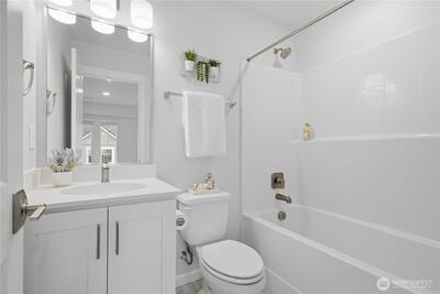 Welcome to this almost-new townhome at Woodside by Taylor Morrison, where modern design meets everyday comfort. The entry level features a versatile den—perfect for a home office—along with a convenient powder room. The light-filled main level showcases an open-concept kitchen with a central island and gas range, flowing seamlessly into a functional dining area and spacious living room. Step outside to a private covered deck with an open view—ideal for morning coffee or year-round relaxation. Upstairs, the top level offers a quiet retreat with a laundry area and two generous suites, including a primary suite with dual vanities and a walk-in shower. Complete with a 1-car garage, EV charger and smart-home features, this home is just minutes to Costco, Downtown Redmond, the Microsoft campus, and Downtown Bellevue. Set in a quiet, thoughtfully designed community surrounded by natural areas and top-rated schools, it delivers the perfect balance of comfort, lifestyle, and convenience.