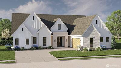 Welcome to LUXURY one-level living in Graham! This stunning 2424 square foot 3 bedroom, 2.5 bath RAMBLER includes a bonus room & an office. Open concept great room has a floor to ceiling fireplace, kitchen offers a mix of beautiful walnut & black cabinetry by Bellmont, quartz countertops, pantry & a Kitchenaid SS appliance package. Primary suite with a massive walk-in closet, & spa-like wet room with high-end finishes. Huge covered patio for outdoor entertaining, plus an outdoor storage closet. Giant storage area with drop-down ladder over the garage. This gorgeous new build sits on 1/3 acre lot, to be landscaped. No HOA. Fantastic floor plan you've got to see! Estimated completion date in May~