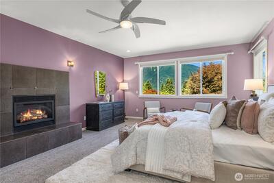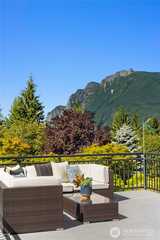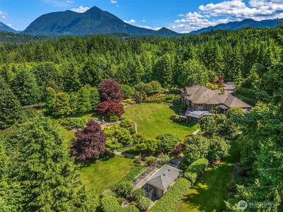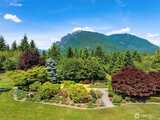 A Cascadian Haven // A rare opportunity to live immersed in the natural splendor of the Cascade foothills, this exceptional residence in North Bend’s coveted Uplands offers a lifestyle defined by space, privacy, and panoramic beauty. Set on nearly five arboretum-like acres with sweeping, unobstructed views of Mount Si, the 5,100+ square foot rambler with daylight basement captures the essence of Pacific Northwest living—where forest, mountain, and sky converge in perfect harmony. Surrounded by evergreens and curated native landscaping, the property feels worlds away, yet remains just minutes from downtown North Bend’s amenities. Thoughtfully remodeled with both elegance and functionality in mind, the home unfolds through expansive, light-filled gathering spaces designed for connection and comfort. Vaulted ceilings, walls of windows, and warm natural finishes frame the breathtaking scenery at every turn. The open-concept main living areas flow effortlessly into a beautifully appoi