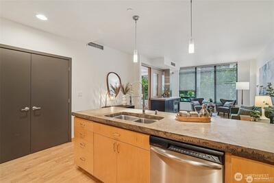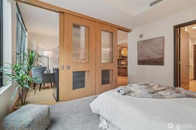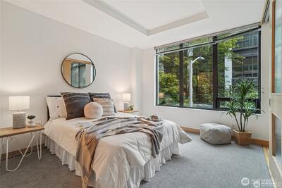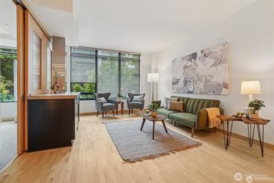Welcome to you spacious retreat! Extra large 1 bed is 45% larger than Belltown average. Nestled in the iconic Bellora building, this sophisticated 1-bedroom + den blends modern design with unbeatable access to Seattle’s best. Clean lines and an open floor plan allow for seamless flow. Premium touches include: hardwood floors, Maple cabinetry and stainless steel appliances. Gas fireplace keeps things cozy. Ample closet/storage space keeps the layout uncluttered. Enjoy top-tier amenities like a 24/7 gym, rooftop deck, concierge, and pet-friendly policies. Secure garage parking included. No rental cap. Just blocks from Olympic Sculpture Park, Pike Place, and downtown Seattle’s best dining and nightlife this is the Emerald City at it's best.