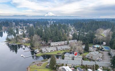 Gated Lake Front Luxury Condo! This is a RARE opportunity to own Condo that sits right on Coffee Creek. These Townhouse Style Condos enjoy creek & lake views + access to the lake via private boat launch, docks for mooring watercraft & a private club house to enjoy to host your larger gatherings.The prior owner had a Complete Custom Remodel in 2018. The Kitchen is amazing; Natural Gas Cooktop/Oven, w/ water spigot for filling pots. The Bathrooms are tiled & have glass surrounds/doors. The current owner installed a grand roof structure over the deck in 2025 [$7,300] to enjoy the large deck, while being sheltered from the weather, while gazing at Coffee Creek as it flows into Spanaway Lake. They also replaced all lighting with Custom Fixtures from the Glass Candle! This condo has a wonderful layout that is open & bright, with beautiful large windows to look out at the creek from your kitchen & great room. Remote Controlled Natural Gas Insert (Fireplace). Private garage with remote control